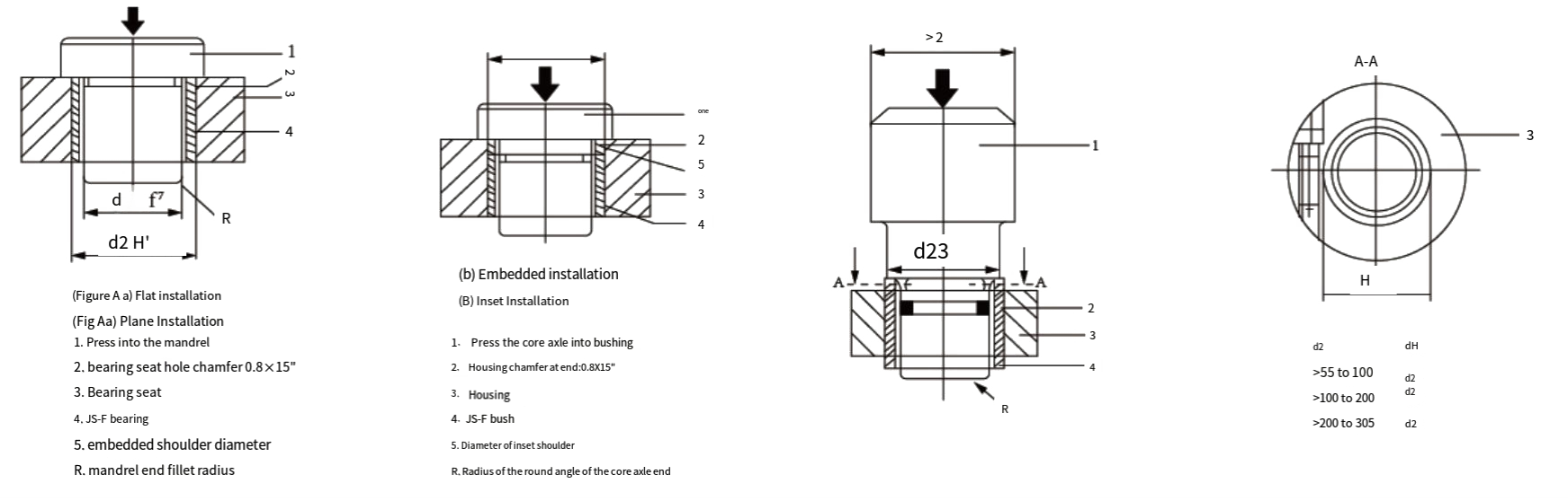 Les buissons HZ doivent être nettoyés au poing avec du kérosène ou du diesel, immergés dans de l'huile moteur puis séchés. Lorsque la douille est installée dans le boîtier, assurez-vous que la douille ne tourne pas dans le boîtier ou ne se déplace pas dans la direction axiale et en même temps, mettez la surface extérieure entièrement en contact avec le trou de base, garantissez généralement la zone de contact supérieure à 7o %, améliorant ainsi la capacité de charge et la transmission de la chaleur de friction. La surface intérieure de la douille HZ est en plastique autolubrifiant, la surface extérieure en acier, le coefficient de frottement de l'acier sur l'acier est plus grand que celui de l'acier sur le plastique, nous devons donc choisir un ajustement serré léger, empêchant le manchon d'essieu de bouger dans la base lors du travail, et empêchant également les trous intérieurs de se déformer et de devenir trop grands en raison du grand ajustement serré du diamètre extérieur.