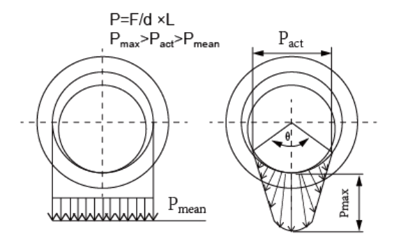 En tant que facteur de jeu, chanfrein des bagues, rainure d'huile, etc. La charge réelle (Pact) est supérieure à la théorie de calcul (Pmoyenne).